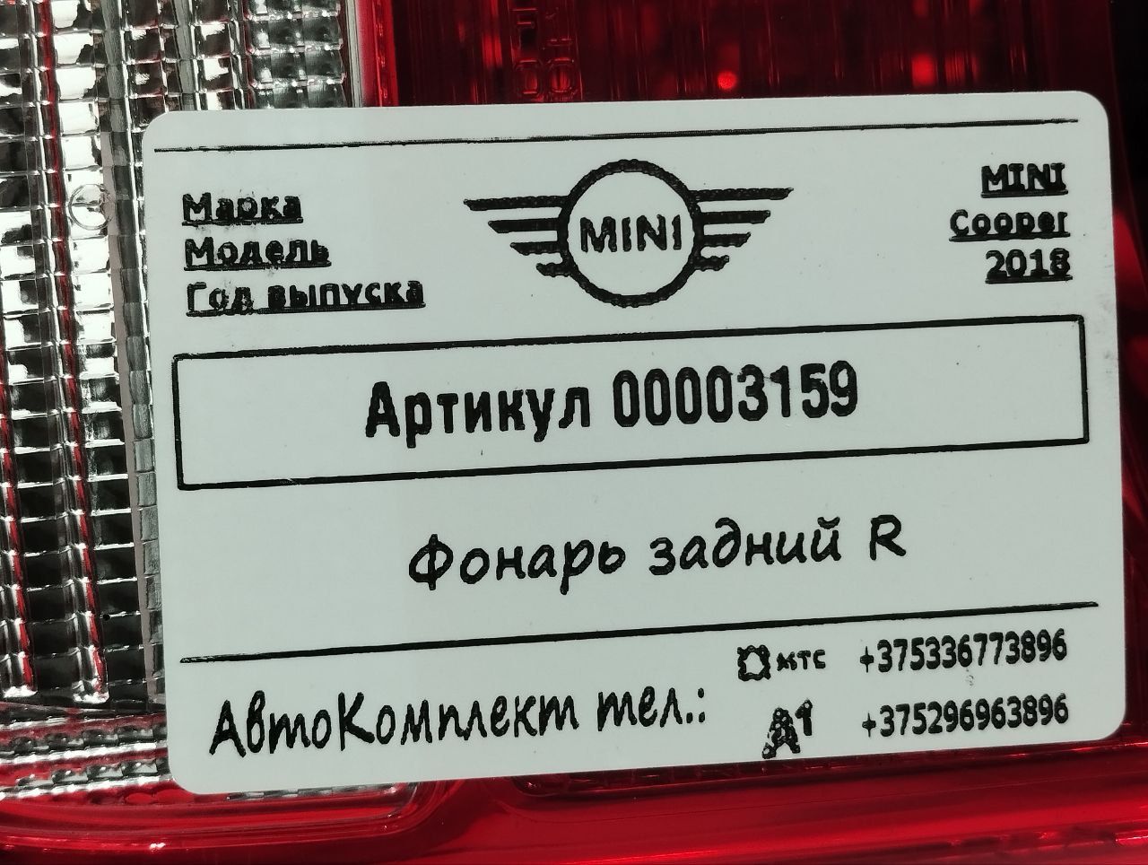 Фонарь задний правый Mini Clubman 2 (F54) 2018
