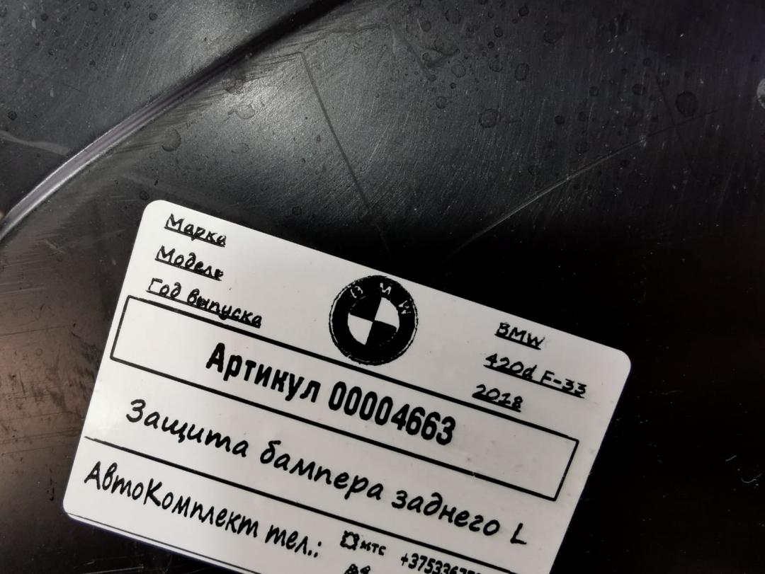 ![защита бампера заднего BMW 4 серия F32/F33/GT F36 [рестайлинг] 2018, 2.0 л., дизель, АКПП, 31757260769 - фото №3](https://api.filesmonster.ru/gallery/version/11/car-part/328163/790047/preview.jpg)