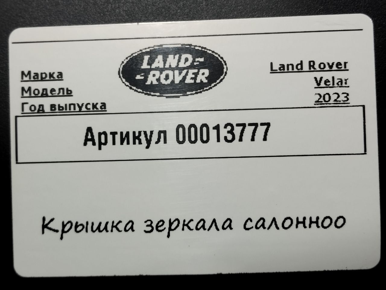 | Модель | Range Rover Velar |