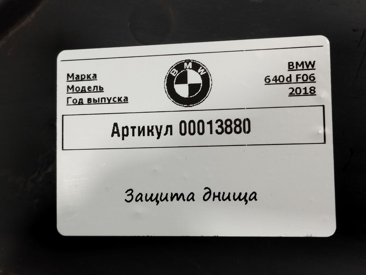 Защита днища BMW 6 G32 2019