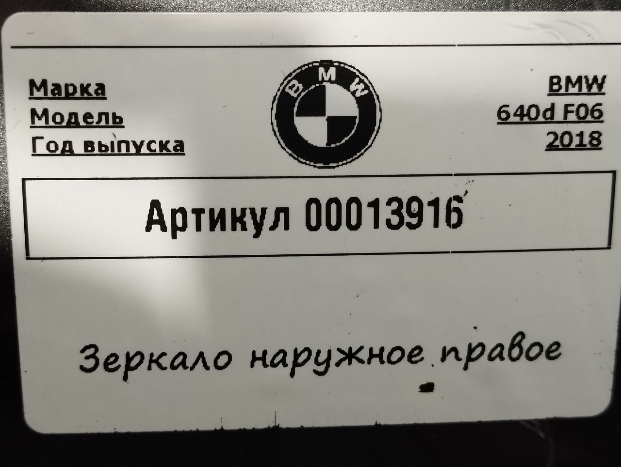 Зеркало наружное правое BMW 6 G32 2019
