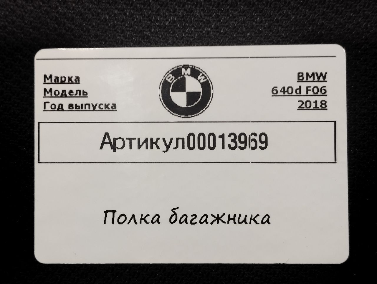 Полка багажника BMW 6 G32 2019