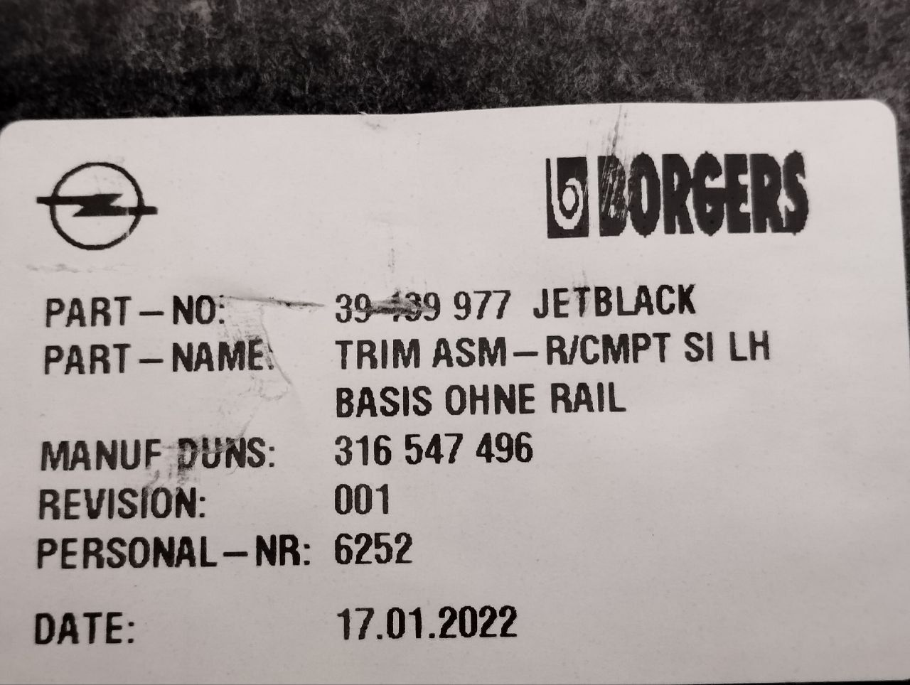 | Номер запчасти | 39139977 |